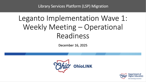 Leganto Implementation Wave 1: Weekly Meeting – Operational Readiness Dec 16, 2025Recording of Leganto Implementation meeting with OhioLINK and Ex Libris.