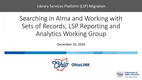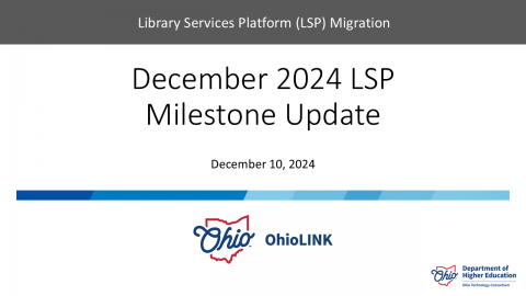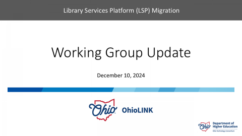LSP Working Groups Update Dec 10, 2024Brief updates from each of the eight OhioLINK LSP Working Groups designed to give each group an opportunity to go over what they've been working on.