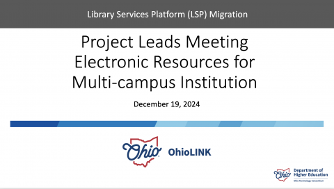 Project Leads: Electronic Resources for Multi-campus Institution Dec 19, 2024Weekly meeting for project leads, Ex Libris, and OhioLINK office.
