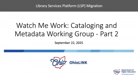 Presenter Stefanie Hunker (Bowling Green State University) demonstrates holding and item record basics (based on her work in the Browne Popular Culture Library) in Alma for the Cataloging and Metad