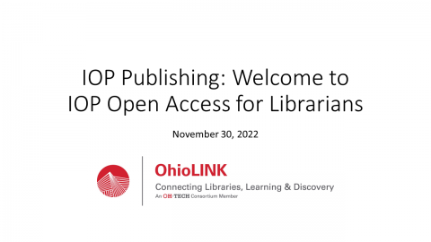 Representatives from IOP Publishing present an introductory webinar on OhioLINK's new Open Access agreement. The webinar will provide an overview of the agreement, how open-access workflow and reporting will function, benefits unlocked for OhioLINK institutional authors, and support for the new agreement.
