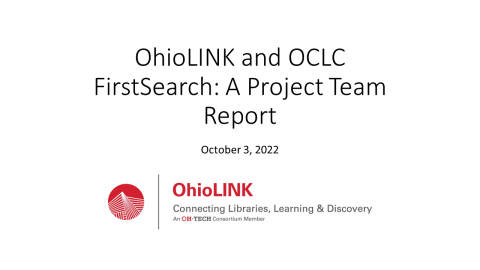 OhioLINK staff explain the FirstSearch information-gathering project conducted in 2021 and early 2022, results, and next steps. Included are findings from four working groups about how FirstSearch works with respect to WorldCat Discovery and Worldcat.org; OCLC Registry; Inter-library loan; and Usage Statistics.