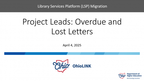Date: Apr 4, 2025Playlists: All Webinars and Recordings 2025LSP Project Lead MeetingsSummary: Weekly meeting for project leads, Ex Libris, and OhioLINK office.