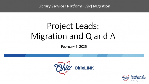 Date: Feb 6, 2025Playlists: All Webinars and Recordings 2025LSP Project Lead MeetingsSummary: Weekly meeting for project leads, Ex Libris, and OhioLINK office.