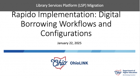 Date: Jan 22, 2025Playlists: All Webinars and Recordings 2025LSP Project Lead MeetingsRapidoSummary: Recording of Rapido Project Leads meeting with OhioLINK and Ex Libris.