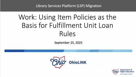 The Circulation and Resource Sharing Working Group presents this watch me work session that reviews the setup of a Fulfillment Unit with locations that have different Terms of Use (TOU) assigned based on the Item Policy and User Group involved in the loan.