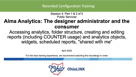 Accessing analytics, folder structure, creating and editing reports (including COUNTER usage) and analytics objects, widgets, scheduled reports, "shared with me"